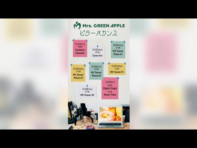 Mrs. GREEN APPLE 新曲「ダーリン」1月20日 月 配信決定! コンテンツカレンダーを発表!1月20日 月 夜9時にMVをプレミア公開!USENの音楽情報サイト「encore アンコール 」。