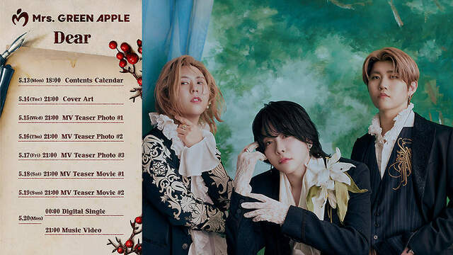 Mrs. GREEN APPLE、映画主題歌「Dear」配信決定でコンテンツカレンダー公開Daily NewsBillboard JAPAN。