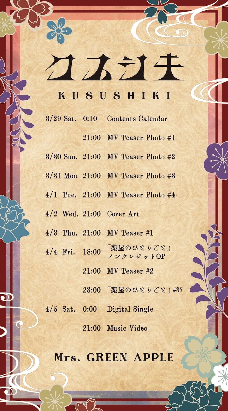 Mrs. GREEN APPLE「クスシキ」コンテンツカレンダー - Mrs. GREENAPPLEとOmoinotake、アニメ「薬屋のひとりごと」新主題歌担当画像・動画ギャラリー 2 6- 音楽ナタリ。