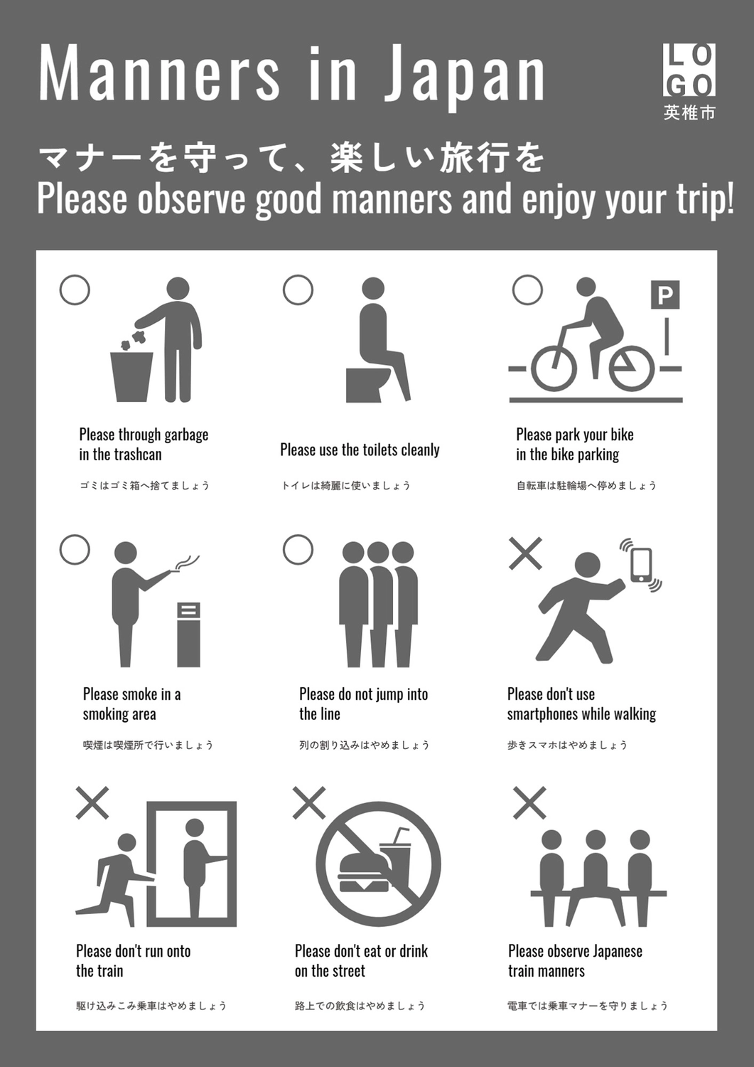 ピクトグラムでマナーを促すチラシ_モノクロの無料インフォグラフィックテンプレート 14164 - デザインAC。