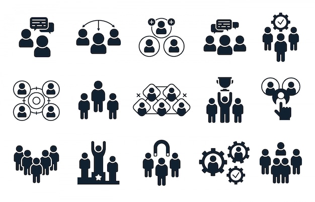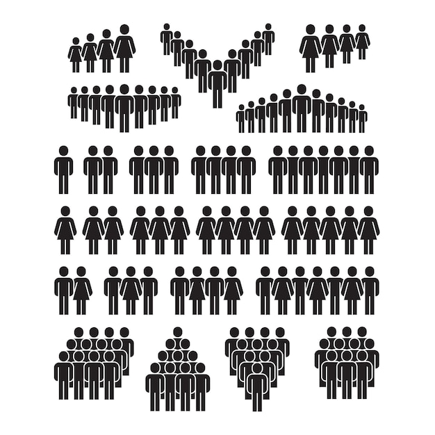 人グループ 人々 シルエット アイコン 市民群集統計とチーム コミュニケーション コンセプト 会社員ピクトグラム一人で立っている男性または女性のサイン ベクトル記号セットPremiumベクトル素材。