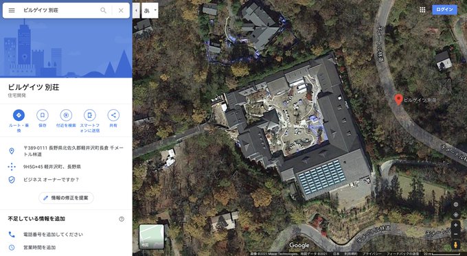 toshibo書籍『8月32日』廃墟と写真 on X: "ビルゲイツが建てた軽井沢の別荘が完成していた。引きで見ても外観を認識できるので、この個人 別荘の巨大さ加減がお分かり頂けるのではないかと思う。6500坪以上あって、更に地下が三階あるらしい。 https:t.co L7AoXzRg6C。