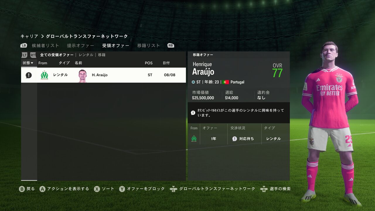 FC24_キャリアモード_SLベンフィカ_2025年8月 : スポゲープレイ日記。