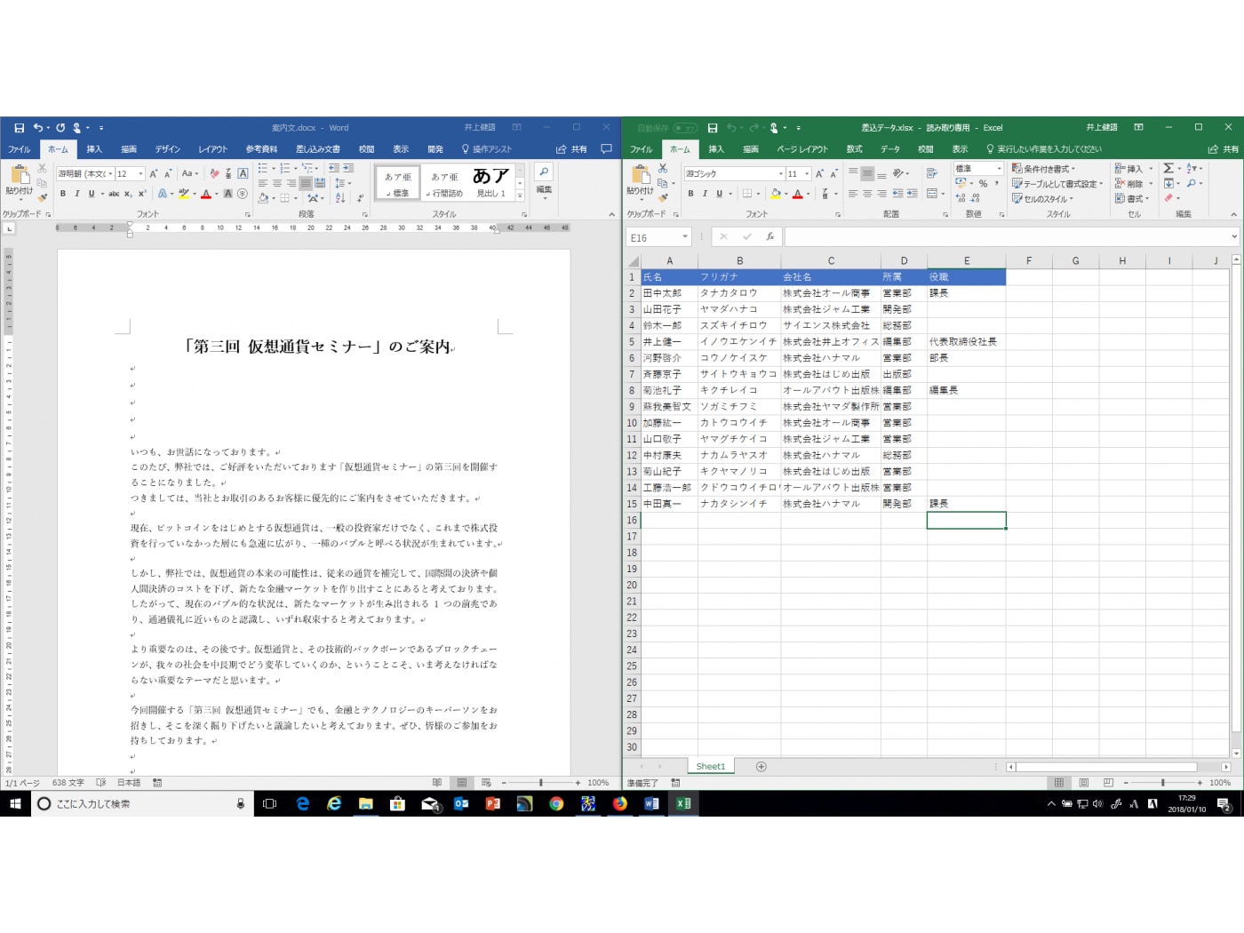 Wordで差し込み印刷 ~Excel エクセル 2016,2013技。