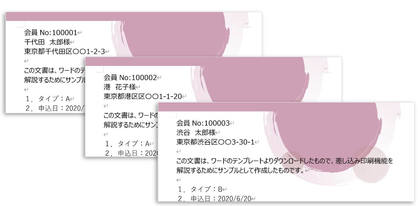 ワードの差し込み印刷エクセルデータを活用して文書を一括印刷。