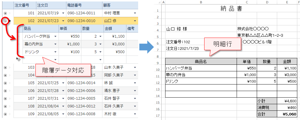 エクセルからエクセルへ差し込み印刷する方法。