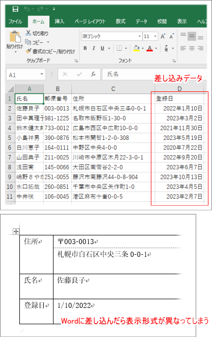 Wordの差し込み文書にExcelの日付の書式が反映されない‥‥ - まりふのひと。