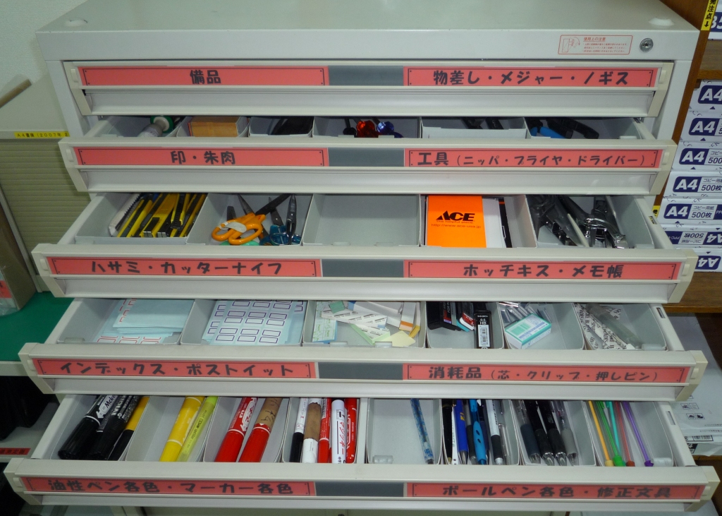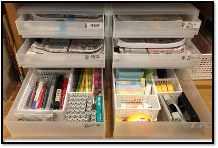 整理収納で仕事の時短・効率化アップ 社内棚の文房具・備品編イエチェン。