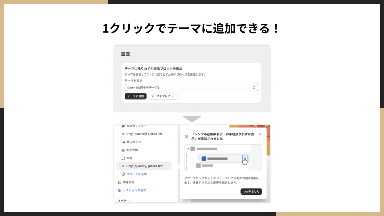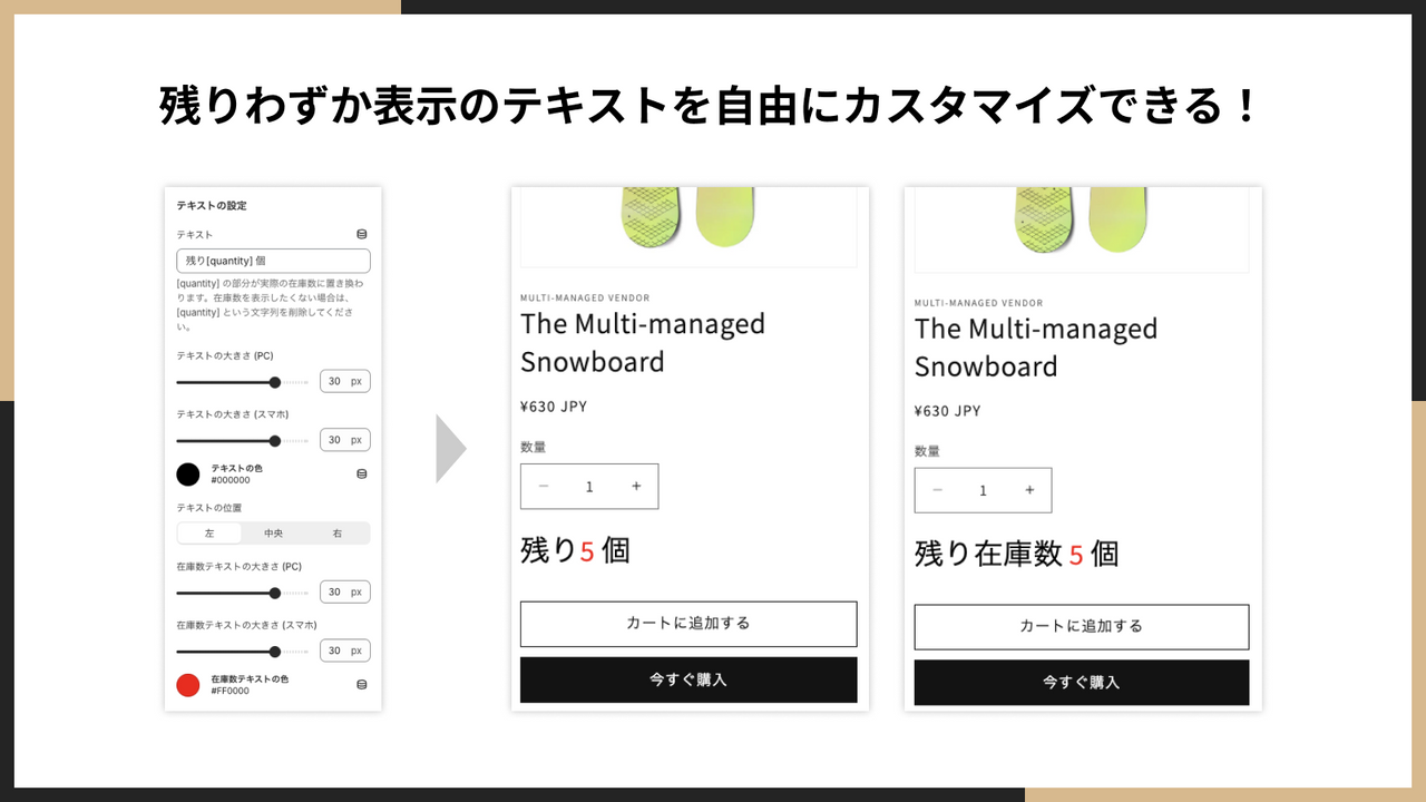 Shopify ストアの商品ページに「残りわずか」と表示する方法について徹底解説。