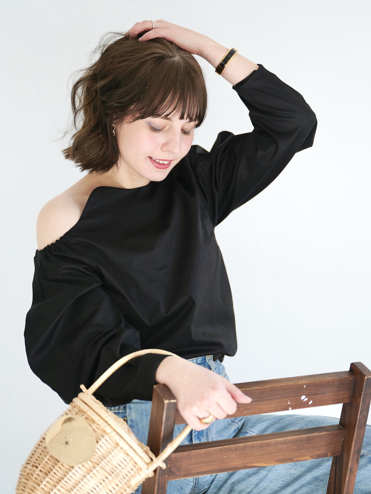 スカラップブラウス ブラック 残りわずかTOPSOBLI。