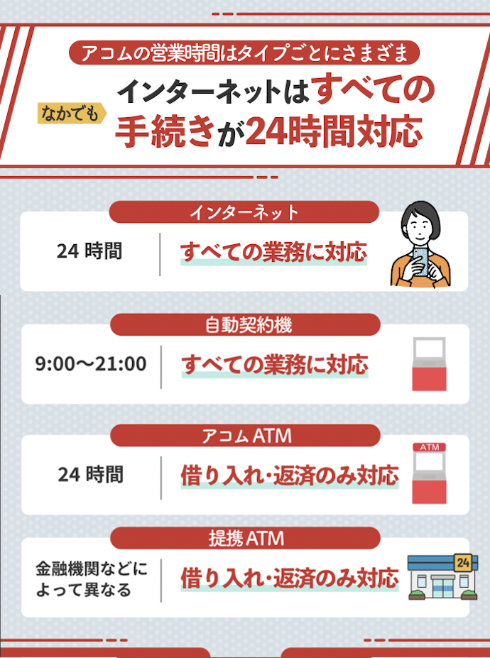 アコムの営業時間は何時まで?電話・自動契約機で即日融資を受けるには?マイベスト。