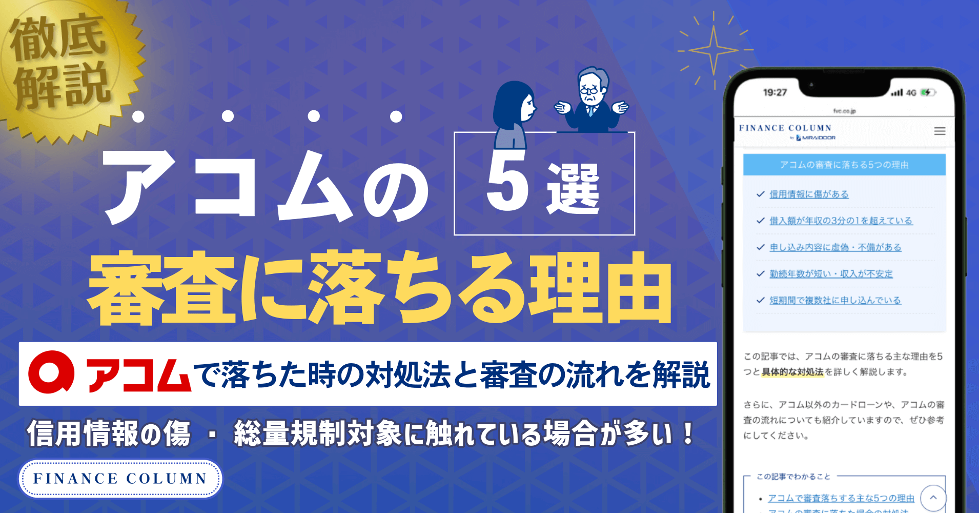 アコムの審査に落ちる理由5選!落ちた時の対処法と審査の流れを解説 - ファイナンスコラム byミライドア株式会社。