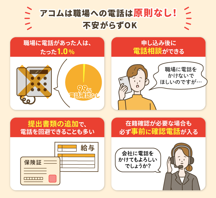 アコムは在籍確認の連絡が原則なし?確実に勤め先への電話を避けるための注意点事業資金の大黒屋。