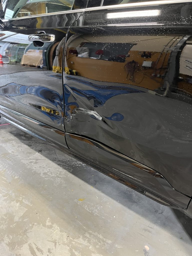 ボルボの板金塗装・修理実績XC90・B5・AWDのドアの凹み破損。