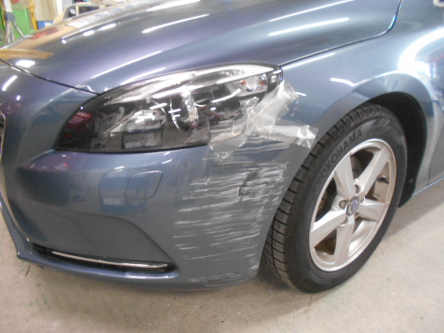 ボルボ フロントバンパー 左フェンダー・フロントバンパー修理大阪の板金塗装なら 板金塗装専門店株式会社フルテック。