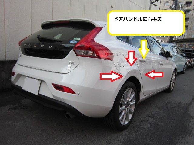 前橋市よりキズ・へこみの板金修理事例 ボルボV60群馬県高崎市の板金塗装キズへこみ事故車の修理 年間修理1000台有 反町自動車。