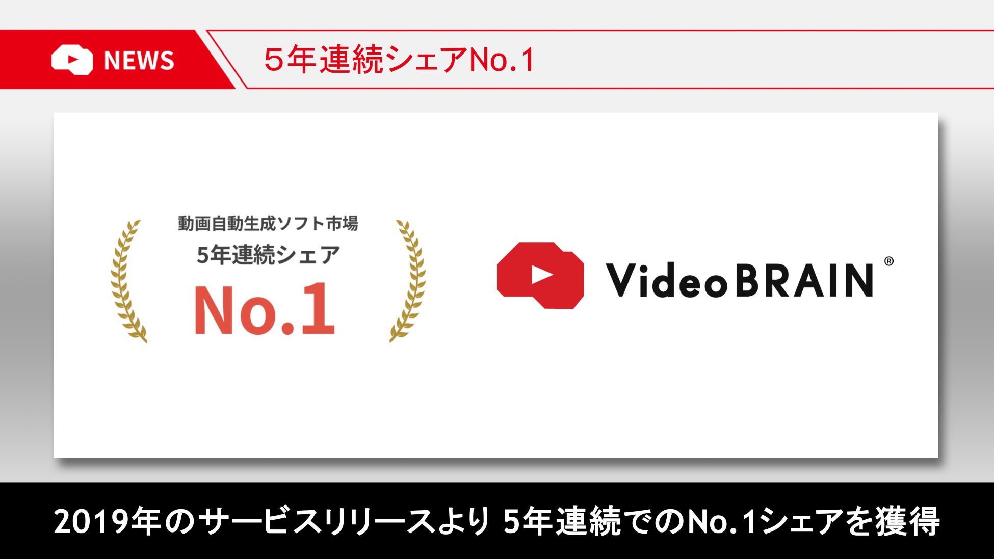AIビジネス動画編集クラウド「Video BRAIN」 5年連続シェアNo.1を獲得株式会社オープンエイトのプレスリリース。