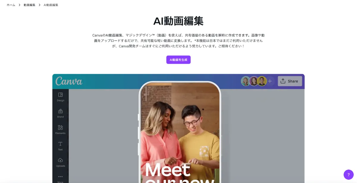 AI動画生成 - 無料でテキストから動画を生成 Canva キャンバ。