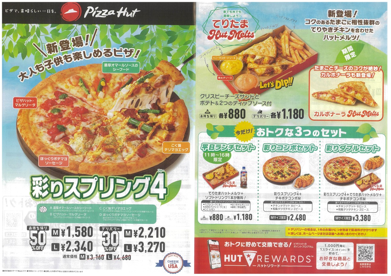 ミッドサービス徳島ポスティング デザイン 印刷 on X: " チラシ紹介\選べる2枚目無料タダ得セット11種のMまたはLサイズピザ+11種のMサイズピザ🍕 ピザ全品 50%OFF お持ち帰り30%~OFF デリバリーアプリ注文3%OFF📲ピザハット徳島店 https:t.co。