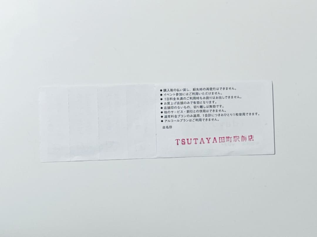 TSUTAYA シェアラウンジ 田町駅前店 回数券 5回分。