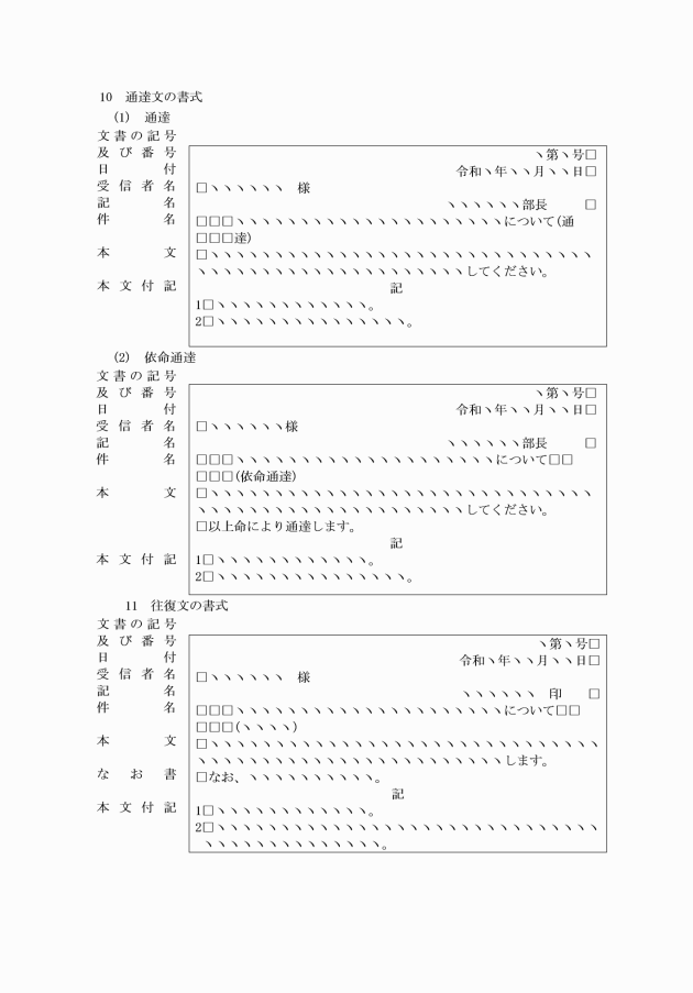 文書 テンプレートの無料ダウンロード: 指示書・通達文書 通達文。