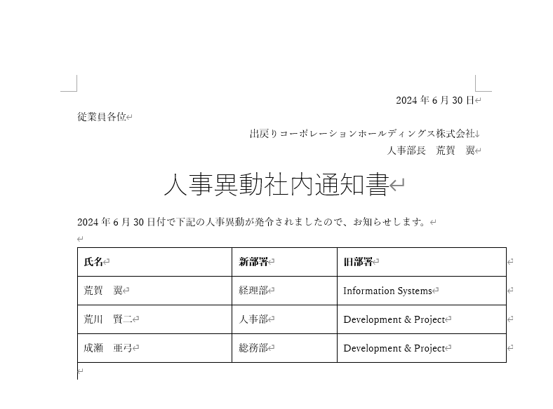Wordで人事異動の社内文書を作る方法★ビジネス文書の作成方法★社内通達書の作り方★左揃えタブ、ドラマ「あなたは私におとされたい」参考★白紙から始めて完成までノーカットで解説★操作マニュアル有。