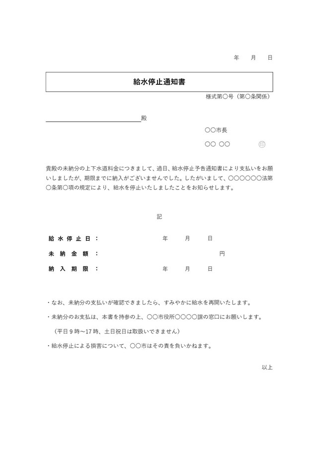 給水停止通知書テンプレート01「シンプルなテキスト文」 ワード・Word 無料ダウンロードテンプレートNAVI。