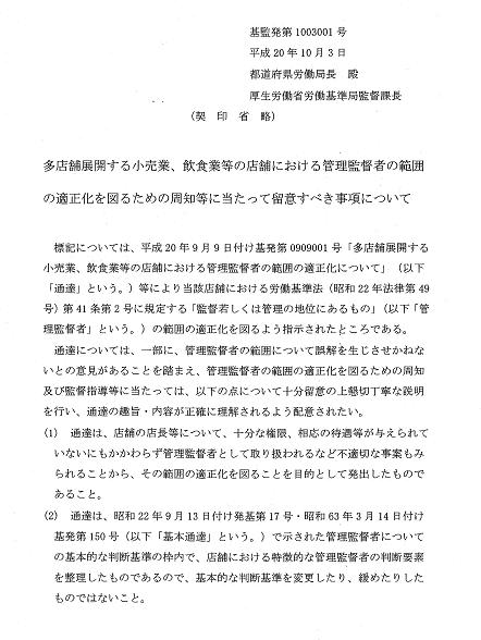 厚労省の「名ばかり管理職」通達に関する指示文書について - 東京東部労働組合 公式 ブログ。