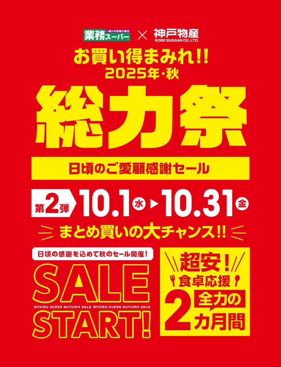 さいたま市見沼区・岩槻区 「業務スーパー」は、9月1日 金 〜10月30日 土 の2ヶ月間、「お買い得まみれ!! 2023年・秋総力祭」を開催するそうです!号外NET さいたま市見沼区・岩槻区。
