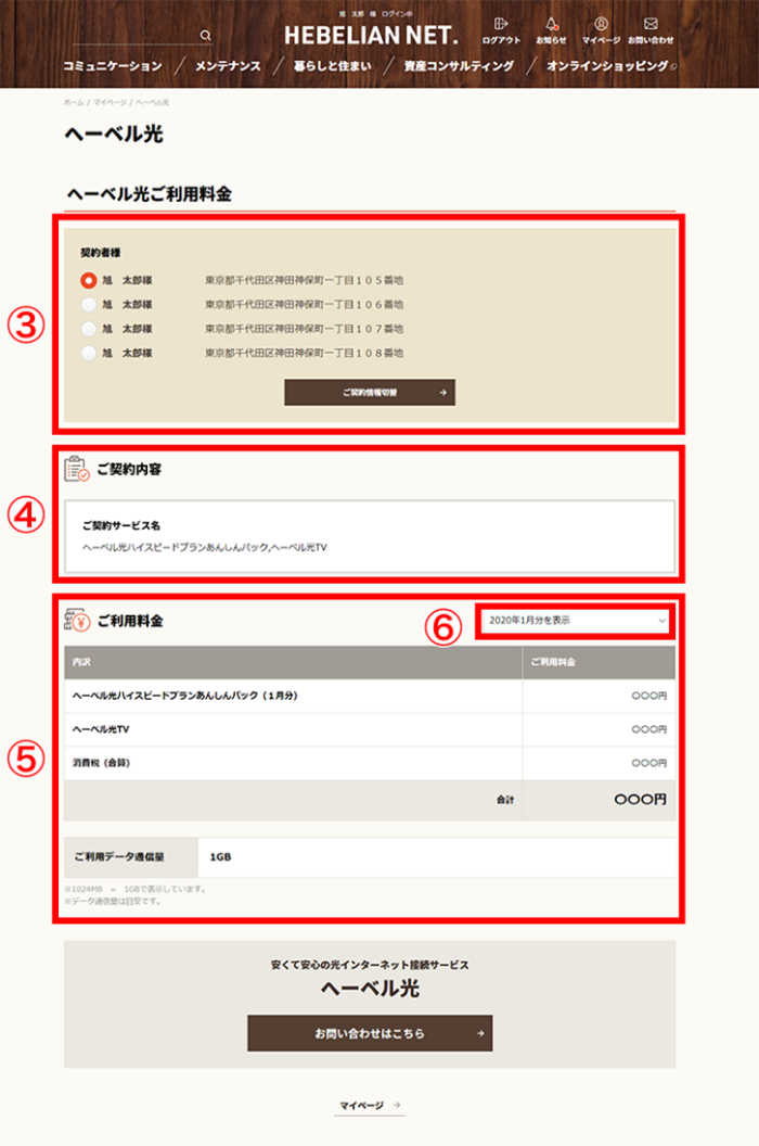 へーベル光の契約内容や利用料金を確認するHEBELIAN NET。