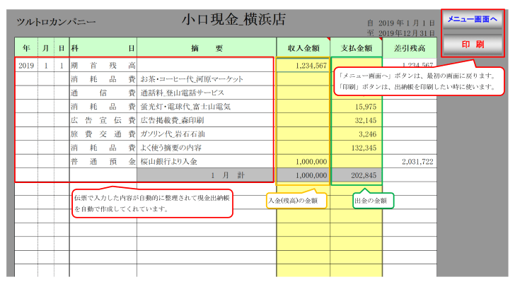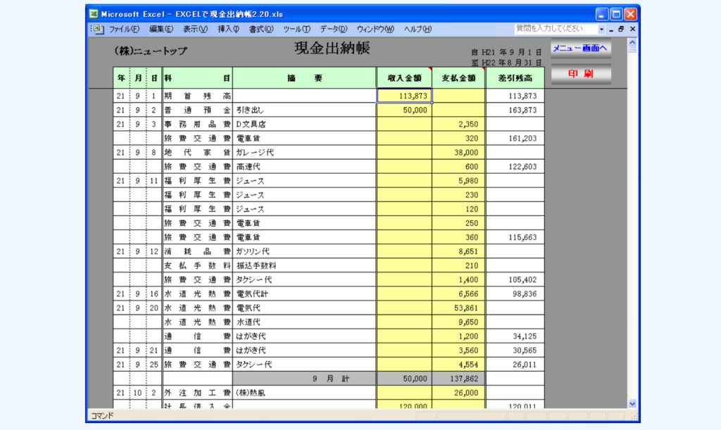 現金出納帳 - 無料テンプレート公開中 - 楽しもう Office。