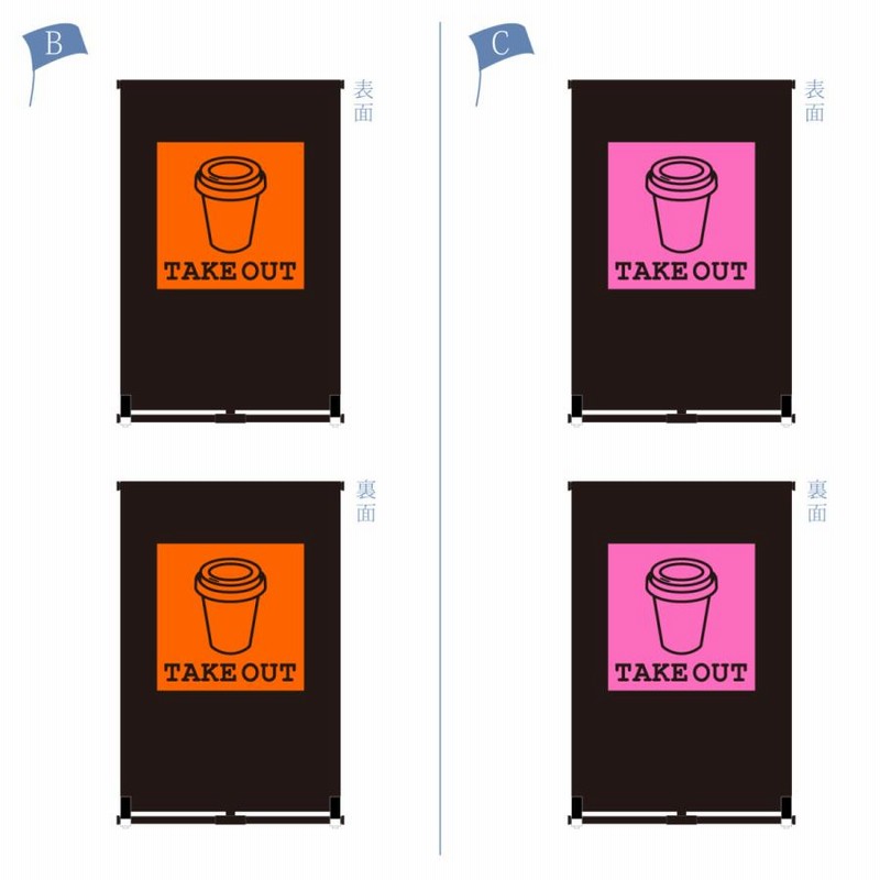 テイクアウト看板お持ち帰りA型のぼりスタンド看板おしゃれのぼりおしゃれなのぼり旗オリジナルデザインセット販売。
