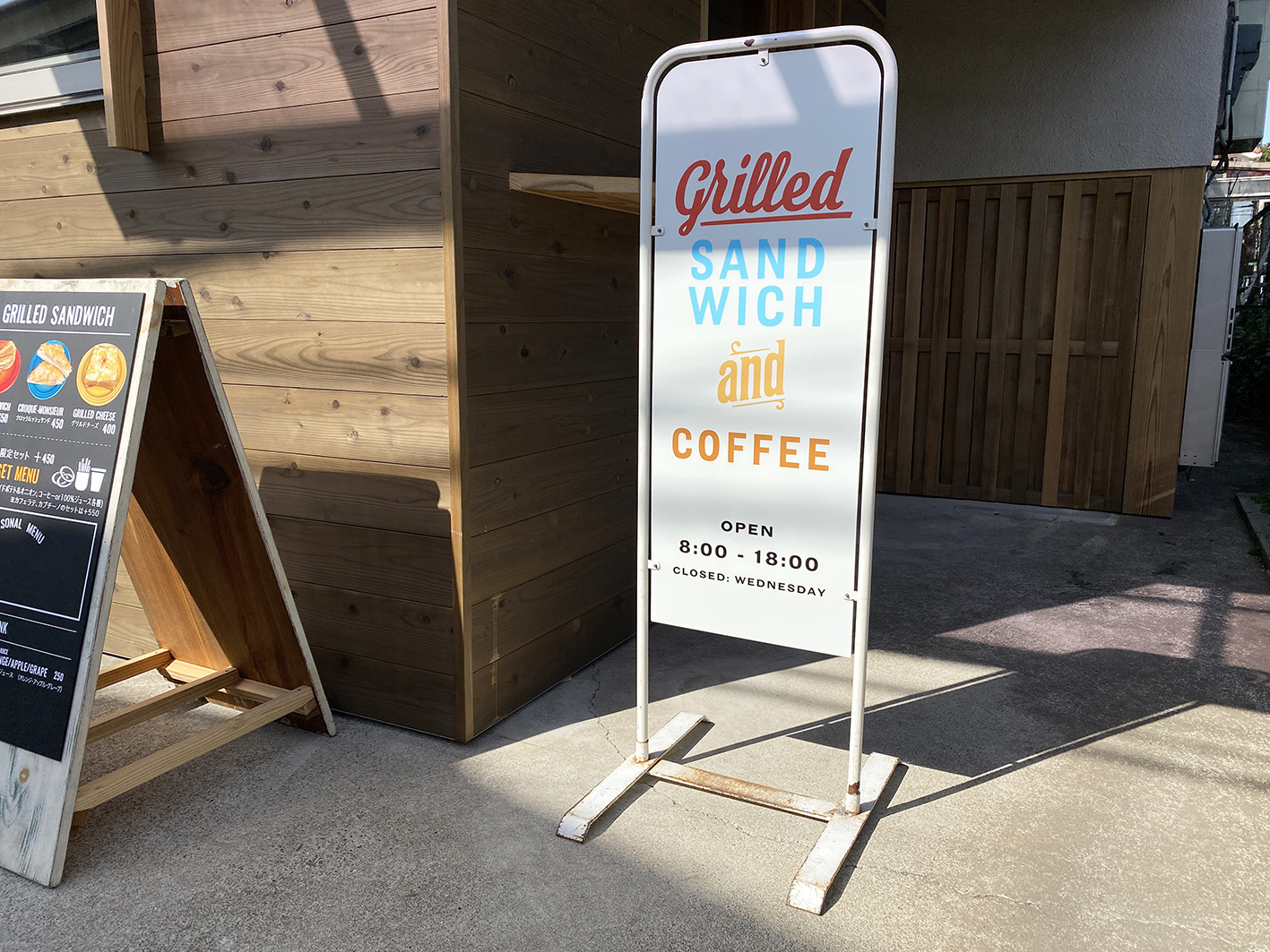 グリルドサンドイッチとコーヒー店の看板デザイン - 看板制作、トータルショップデザイン「SIGNPOST」。