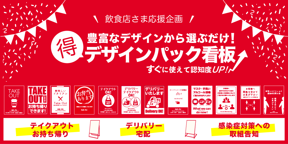 テイクアウト 持ち帰り専用の看板デザインパック特集看板の激安通販ならサインシティ看板の激安通販サインシティ 看板設置も全国ご対応!。