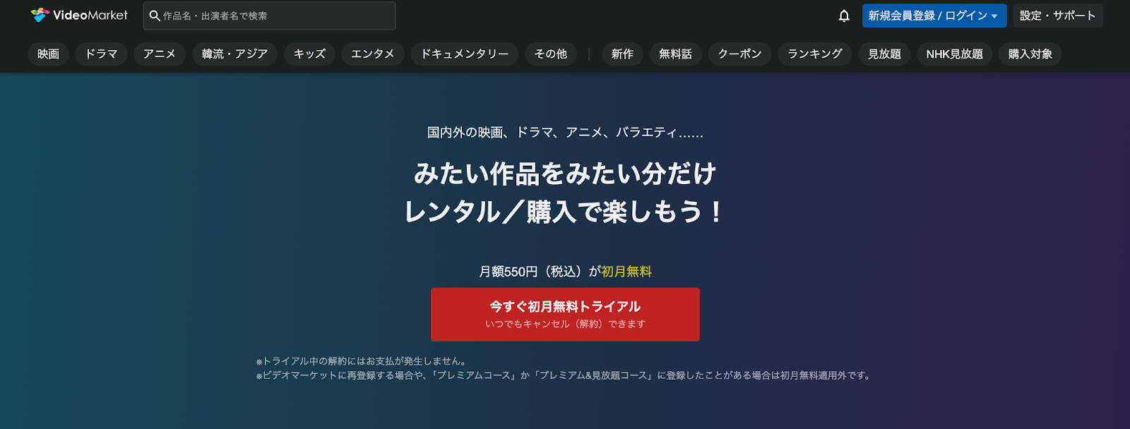 ビデオマーケットは無料で利用できる?トライアルで使う方法を解説 - 動画配信サービス比較。