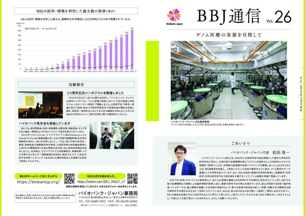 BBJ通信 26号を発行 令和6年3月– バイオバンク・ジャパン BioBank Japan 東京大学医科学研究所。
