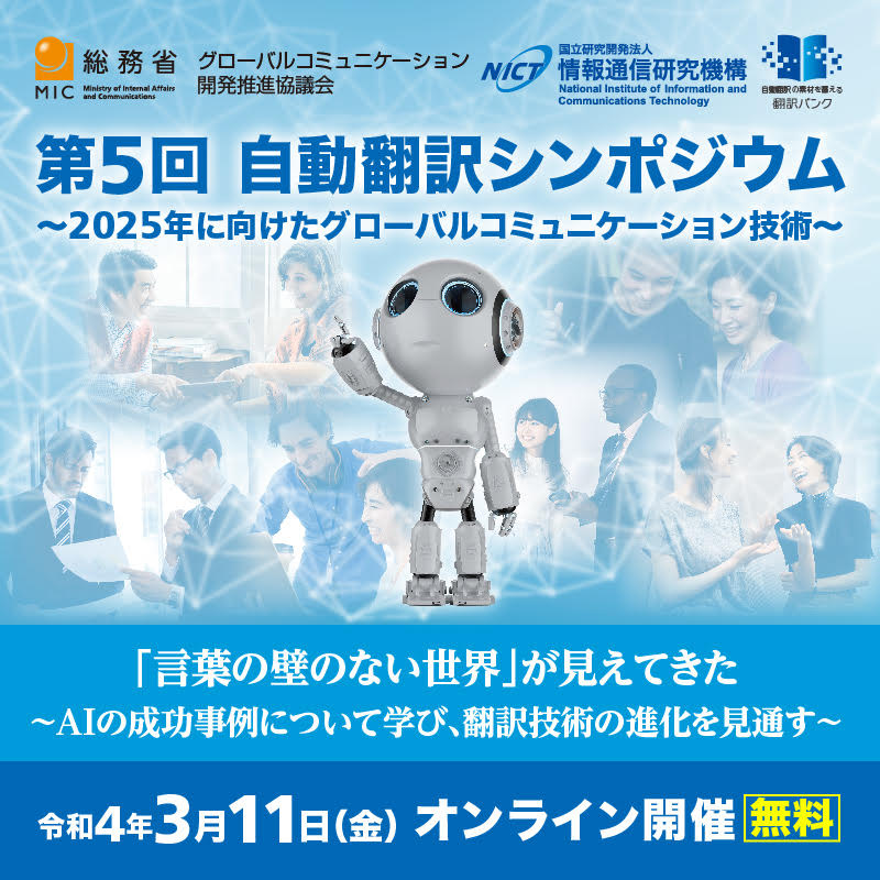 第5回 自動翻訳シンポジウム オンライン配信にて開催!自動翻訳シンポジウム事務局のプレスリリース。