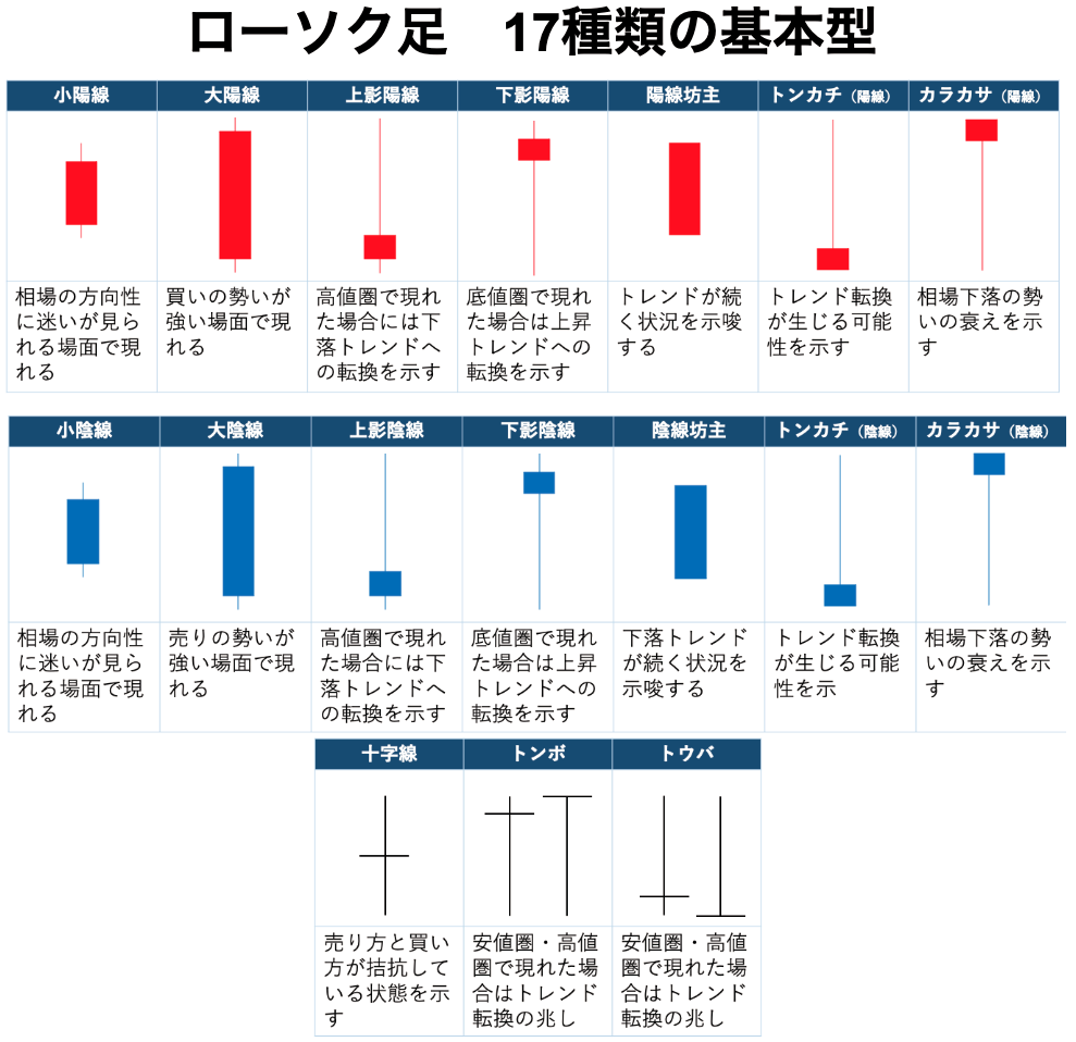 ローソク足の見方 17種類の基本型とローソク足に現れる相場の兆し。