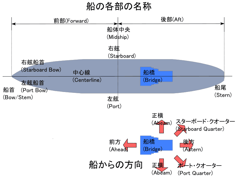 船首、船尾の呼びかた〜”トモ・オモテ”、英語では。