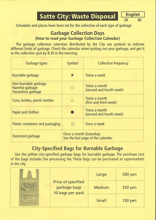 How to sort and put out your trash and garbage 家庭ごみの分別・出し方:英語翻訳版-愛媛県新居浜市ホームページ四国屈指の臨海工業都市。