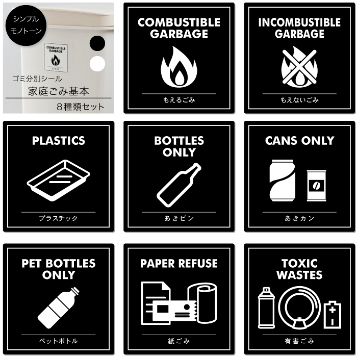 ゴミ分別ステッカー 識別シール リサイクル 資源 ゴミ箱 民泊 外国人 英語表記付き 燃えるごみ用 - RadiantSticker。
