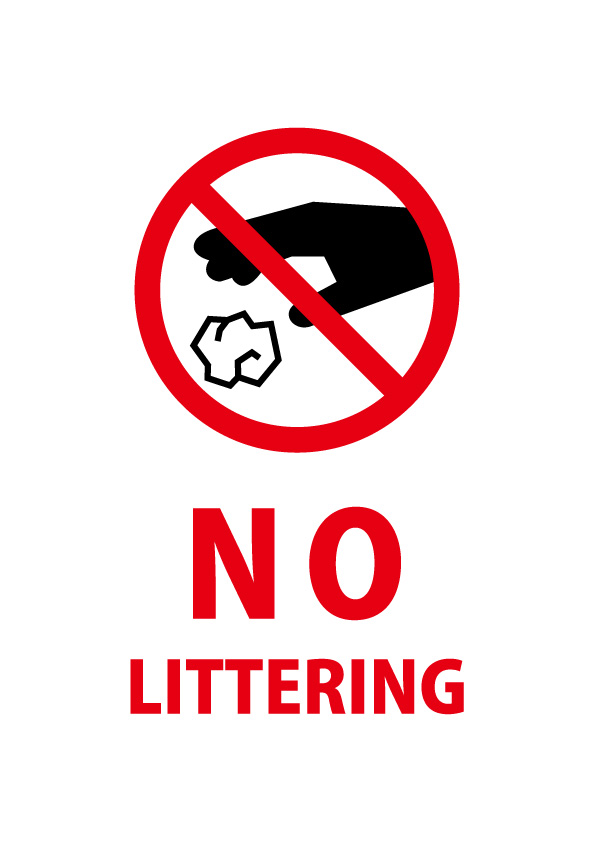 ゴミのポイ捨て禁止を意味する英語の注意貼り紙テンプレート無料・商用可能 注意書き・張り紙テンプレート ポスター対応。