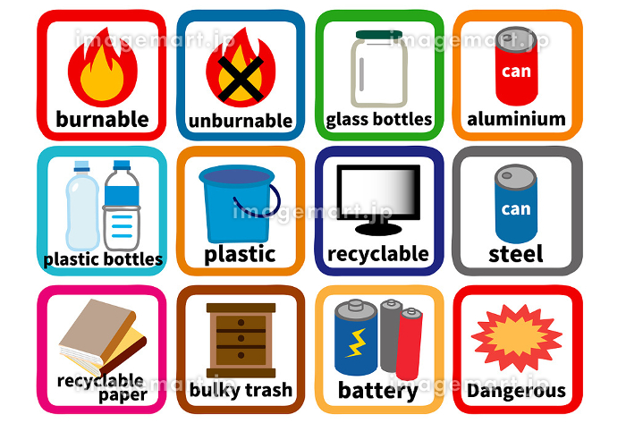 ごみの分別アイコンセット_英語_1_アウトラインのイラスト素材199237332- イメージマート。