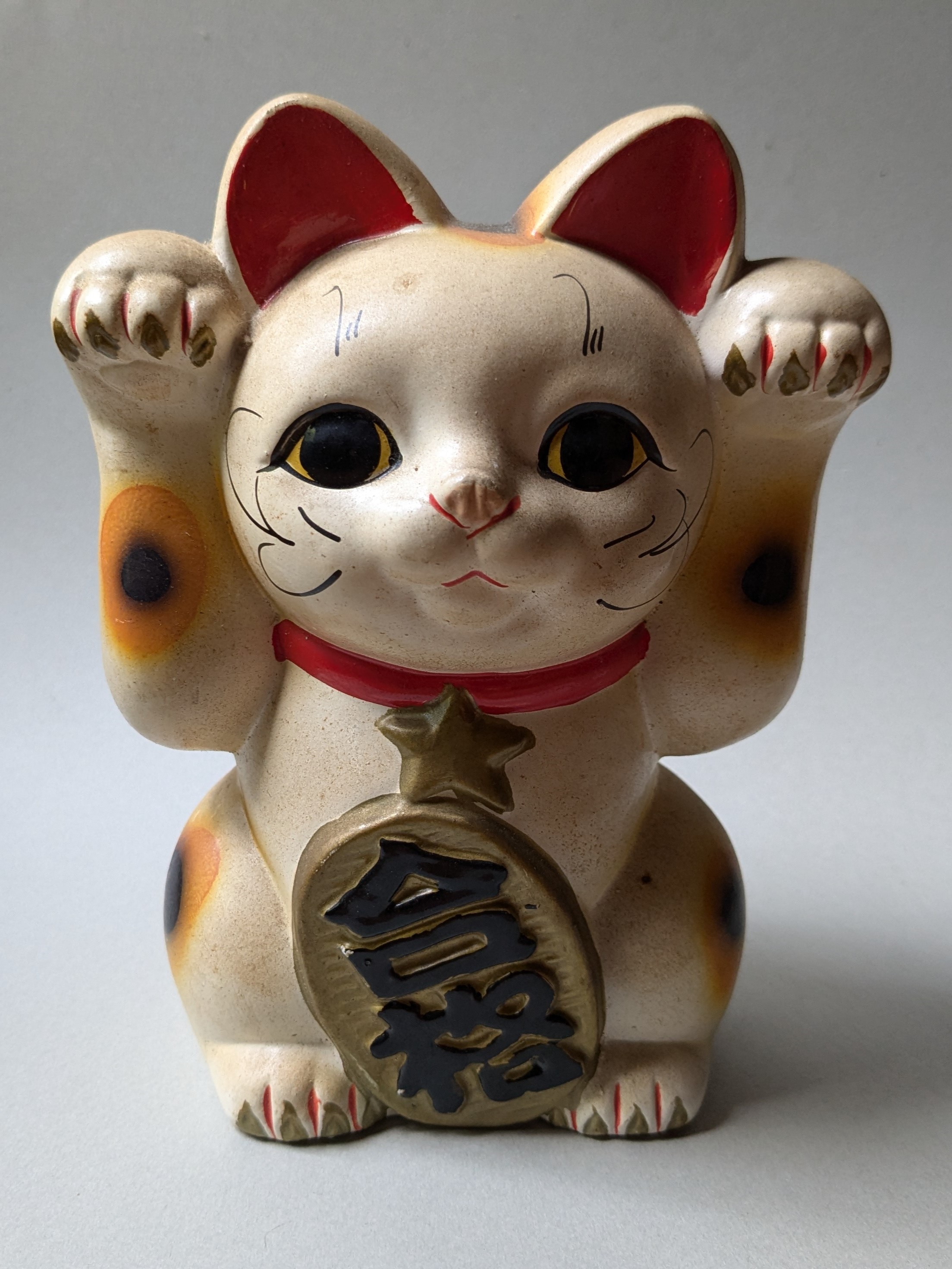 当時物 古い招き猫 約42㌢ 千万両 開運 縁起物 招き猫 貯金箱 陶器。