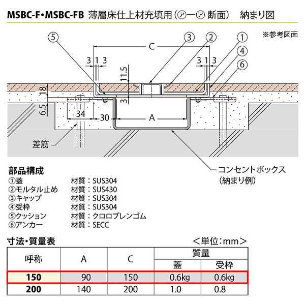 カネソウ 薄層床仕上材モルタル 充填用 屋内用 一般形 ステンレス製 フロアコンセント用カバー 150 屋内用 MSBC-F-150あかばね金物.オンライン。