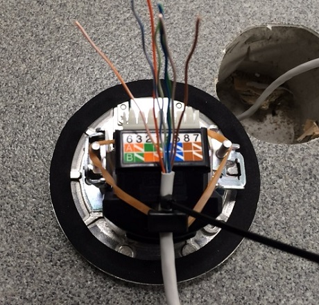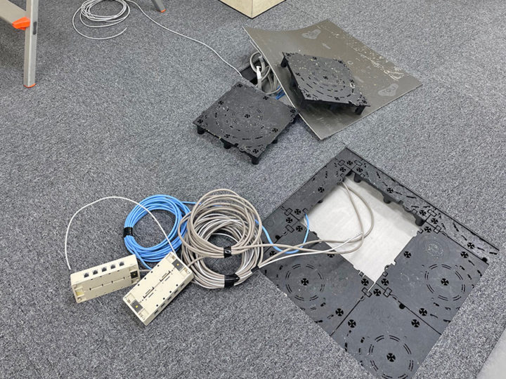 OAフロア内コンセント配線工事オフィスさつき電気商会 名古屋の電気工事。