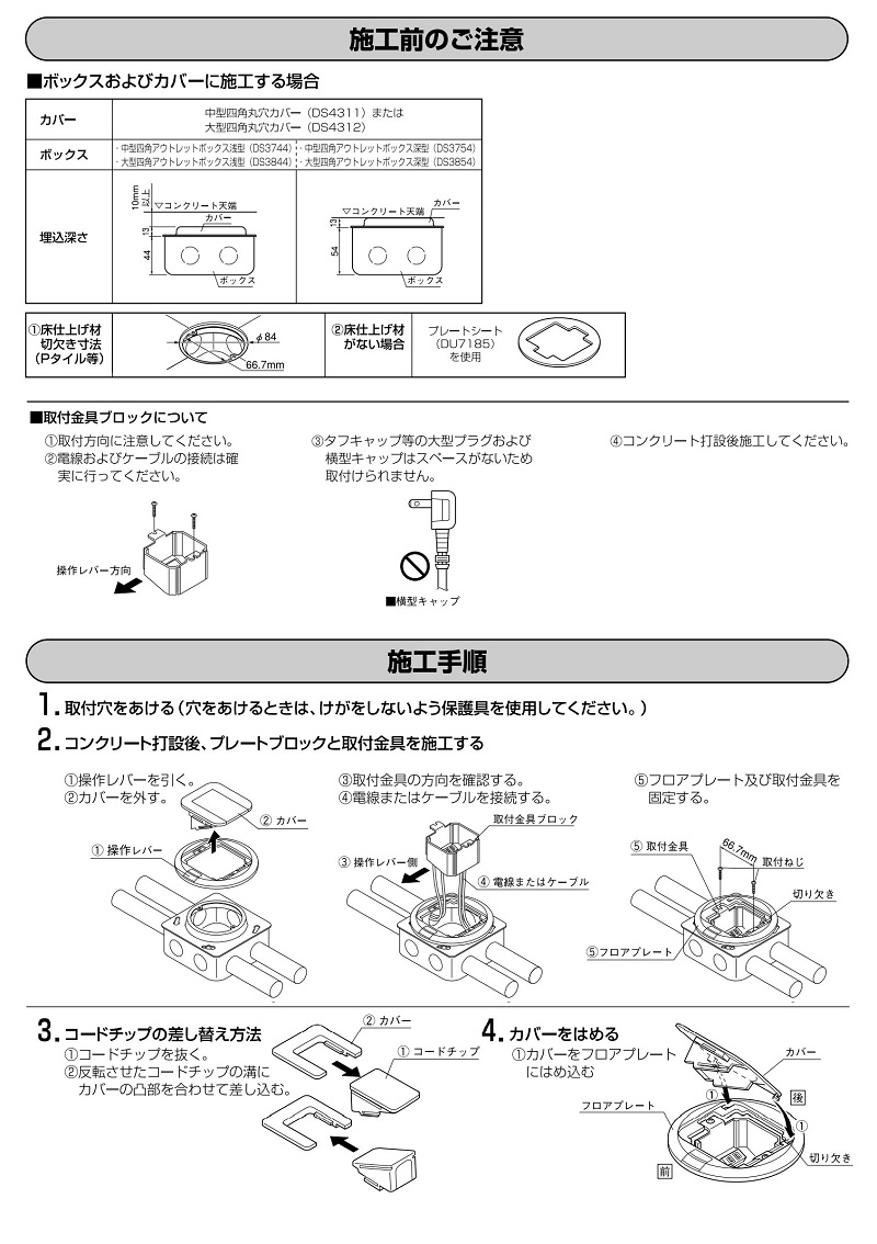 床用コンセント 電線管工事用のフロアコン 1コ用 の、施工方法を教えてください。 - フロア配線システム - Panasonic。