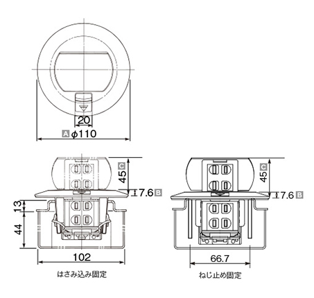 床用コンセント 電線管工事用アップコンの固定方法、「はさみ込み固定」や「ねじ止め固定」とは、どのように固定する方法か、教えてください。 - フロア配線システム- Panasonic。