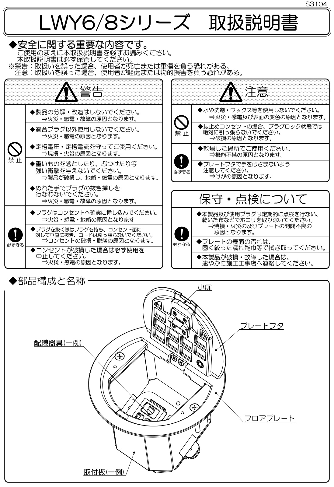 床用コンセント 既設の電線管工事用フロアコン 1コ用または2コ用 を取り外したときに、穴を塞ぐ部材はありますか。 - フロア配線システム -Panasonic。
