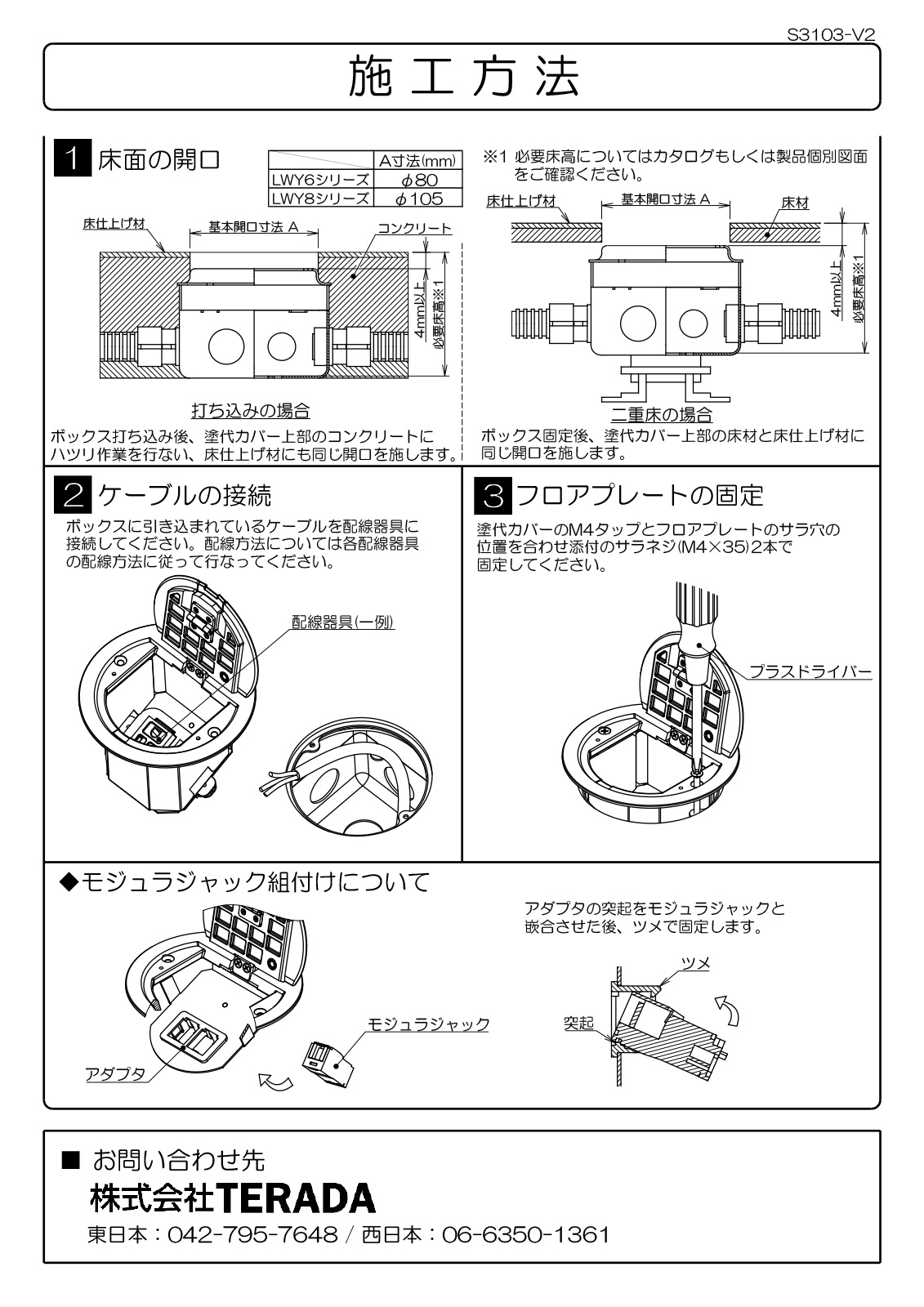 TERADA フロアコンセント テラコン フリーアクセスフロア用 バリアフリー施工用治具・工具・アクセサリ。